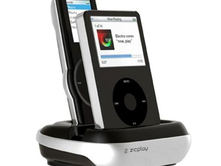 Das ewoo-Dock verfügt über einen digitalen und einen analogen Audioanschluss sowie einen S-Video- Port, mit dem sich Videos vom iPod auf dem TV-Gerät abspielen lassen. Neben dem iPod selbst bietet das Dock auch für die Fernbedienung einen geeigneten Platz. Im Lieferumfang des ewoo ist ein Audio- aber kein S-Video-Kabel enthalten.
