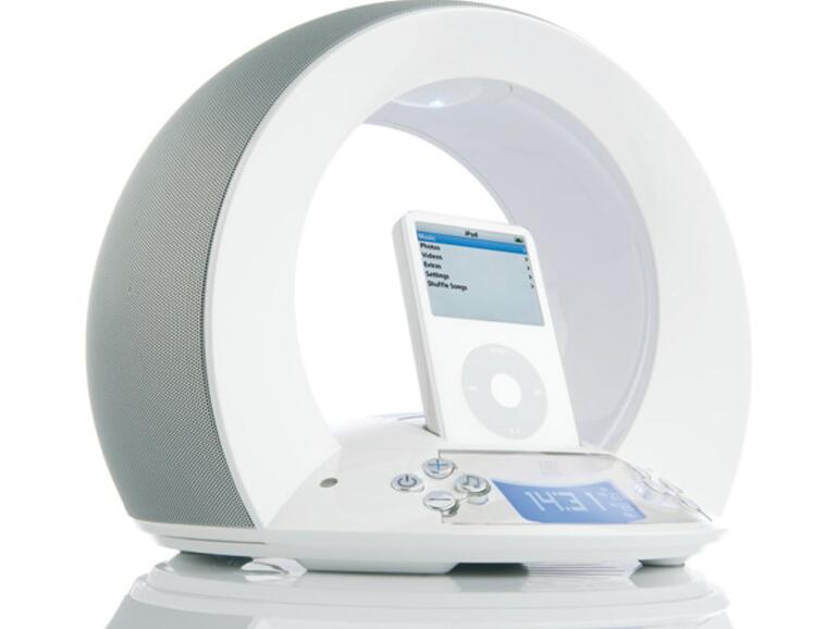 Die Ursache hierfür ist in der aktuellen Firmware des iPod zu suchen, ältere Firmware-Versionen sind hiervon nicht betroffen. In unserem Fall spielte der iPod stets bei Anwendung der Weckfunktion den ersten Song der Musikbibliothek. Der Sound des JBl on time ist für ein iPod-Lautsprechersystem über jeden Zweifel erhaben. Egal ob Rock oder Klassik, die Musik tönt stets detailliert und voluminös aus dem kreisrunden Lautsprecher, so dass das JBl on time zu Hause nicht nur als „Wecker“, sondern stattdessen auch als Ersatz für die Stereoanlage genutzt werden kann.