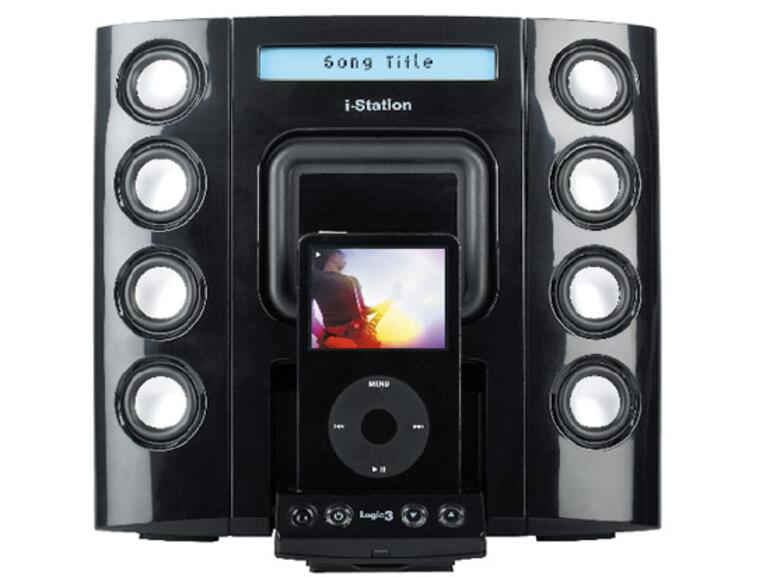 Genau wie im Fall der i-Station7 ist eine Infrarot-Fernbedienung im Lieferumfang enthalten, mit der zum Beispiel auch unterschiedliche Wiedergabelisten ausgewählt werden können. Im Zusammenhang mit dem interessanten Design des Lautsprechersystems weiß die i-Station8 also zunächst durchaus zu beeindrucken. Das Gerät ist kompatibel mit allen iPods, ältere Modelle ohne Dock-Anschluss werden mit einem beigelegten Audiokabel verbunden. Durch die acht Hochtöner und den Subwoofer der i-Station8 gerät der Klang des Gerätes mehr als zufriedenstellend. Es existieren iPod-Lautsprechersysteme, die in puncto Klangqualität der i-Station8 überlegend sind. Für diese muss aber größtenteils tiefer in die Tasche gegriffen werden.