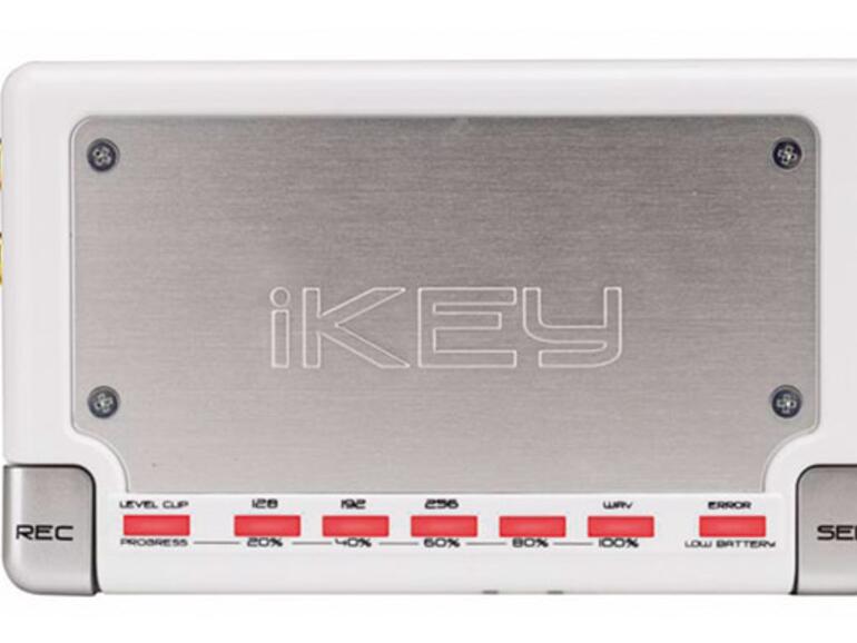 Mit dem iKEY lässt sich beispielsweise die Vinylsammlung recht einfach auf einen USB-Massenspeicher übertragen, insbesondere böten sich hierbei ein iPod oder eine externe USB-Festplatte an. Zur Verfügung stehen die beiden Formate WAV und MP3, wobei bei letzterem eine Wahl zwischen 128, 192 und 256 Kbit/s besteht. Für die Wahl des Aufnahmeformats spielt die Größe des angeschlossenen Speichers die entscheidende Rolle: Ist dieser beispielsweise ein GB groß, so passen darauf 16,5 Stunden Audiomaterial als MP3 mit 128 Kbit/s, elf Stunden als MP3 192 Kbit/s, acht Stunden als MP3 256 Kbit/s und 1,5 Stunden als WAV. Mit jedem Druck auf die Aufnahmetaste wird eine neue Datei auf dem angeschlossenen Speicher angelegt.