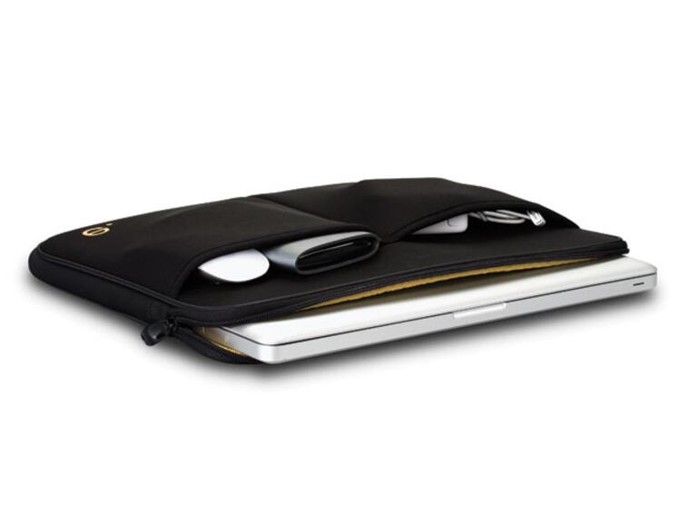 Leichtes Sleeve, in dem das MacBook Pro sehr gut geschützt ist – Understatement im Auftritt inklusive.