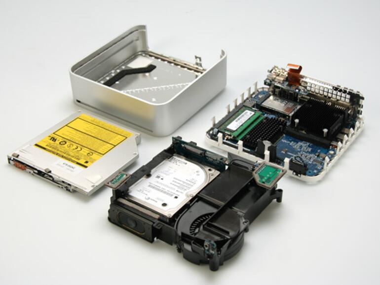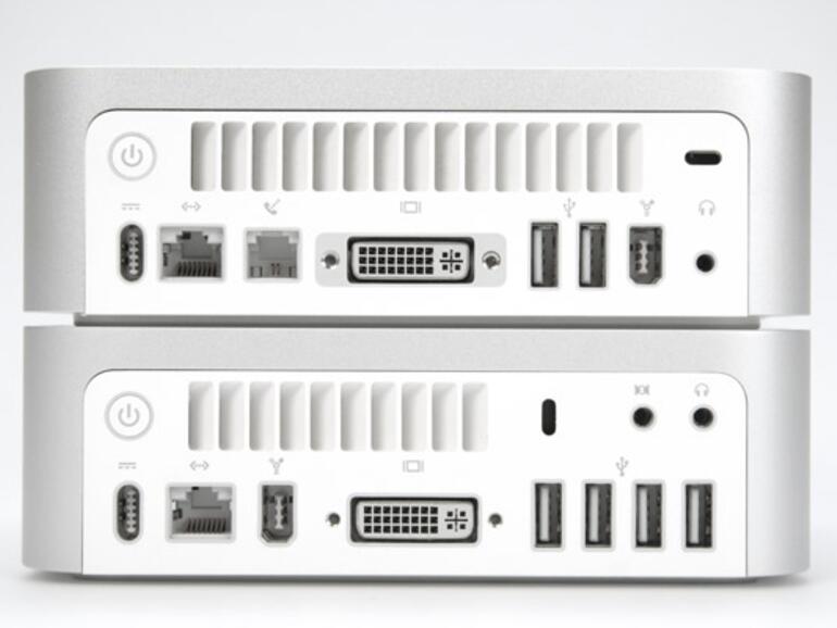 Schließt man den mini an den Fernseher an und gönnt dem Rechner außerdem ein Fernsehempfangsmodul, steht eine vollständige Multimedia-Anlage mit äußerst geringem Platzbedarf im Wohnzimmer. Mit Front Row oder MediaCentral in Kombination mit der Apple Remote lässt sich das Ganze auch bequem bedienen, obwohl Front Row zurzeit der Zugriff auf Fernsehsoftware fehlt. Dank des digitalen Audioausgangs ergeben sich außerdem mehr musikalische Einsatzbereiche für die neuen minis. Enttäuschend schneidet der Mac mini 1,5 GHz ab, denn er kann sich lediglich im 3D-Bereich gegenüber seinem Vorgänger hervortun und das ist keine Domäne eines Mac mini. An das Core-Duo-Modell kann die Solo-Variante nicht heranreichen. Ein SuperDrive fehlt außerdem. Potenzielle Käufer sollten überlegen, ob nicht einer der letzten günstigen Mac minis G4 1,42 GHz ein passenderer Kauf als ein Mac mini 1,5 GHz wäre.