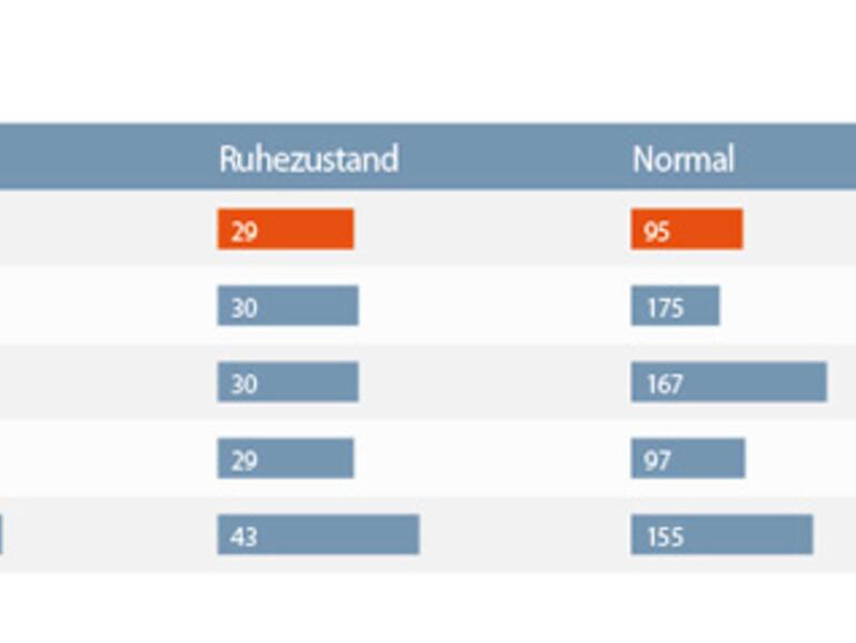 Sehr gute Werte erzielt die Standardvariante des aktuellen Mac Pro beim Stromverbrauch. Unter Volllast war die Leistungsaufnahme des Mac Pro nur etwa halb so hoch wie im Fall des bisherigen Spitzenmodells. Etwa gleich auf zeigte sich der Mac Pro in dieser Beziehung mit der bisherigen Einstiegsvariante. Auch bei normalem Betrieb zeigt sich das neue Modell im Vergleich ähnlich sparsam.