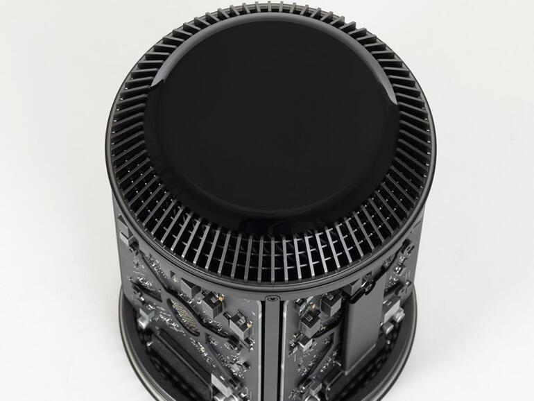 Der einzige echte Nachteil der neuen Bauweise des Mac Pro ist, dass man ihn im Inneren im Prinzip nicht mehr selbst erweitern kann. Es gibt keine Einschübe für weitere Festplatten oder optische Laufwerke mehr. Es gibt keine Erweiterungssteckplätze für alternative Audio-Interfaces oder sonstige Karten mehr. Wer den neuen Mac Pro erwirbt, muss alles nach außen verlagern – und gegebenenfalls sogar zusätzliche Geräte kaufen. Denn der neue Mac Pro kommt ohne Firewire-Buchsen, ohne Lesegerät für SD-Karten und ohne Audio-Eingang.