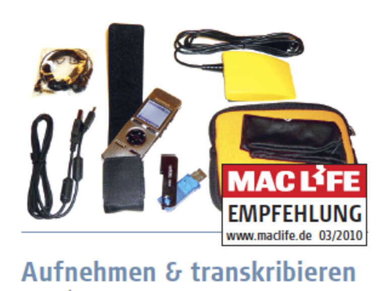 Zudem erfreut der Lieferumfang: Die drei Mackompatiblen Transkriptionsprogramme erleichtern das Abtippen von Audio-Interviews ungemein und sind über den ebenfalls im Paket enthaltenen Fußschalter (Empfehlung der Redaktion in Mac Life 08.2007) gut zu bedienen. So bleiben für Interviews keine Wünsche offen. (nk)
