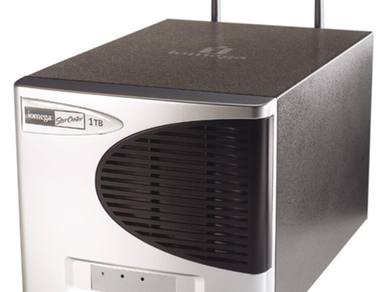 Als Netzwerkfestplatten bietet Iomega seine „StorCenter-Lösungen für den Schreibtisch“ in unterschiedlichen Kapazitäten und Gehäusen an. Da man im Netzwerk nie genug Speicher haben kann (Backups, Projekte, Videos), haben wir gleich die „1 TB Gigabit Ethernet“ unter die Lupe genommen, die auch „wireless“ erreichbar ist oder an einem einzelnen Mac über Ethernetkabel arbeitet. Hat man die jüngste Version des Discovery Tools (2.1) von den Iomega-Webseiten geladen und damit die Platte im Netz „entdeckt“, lässt sich das StorCenter auch vom Intel-Mac aus in vierfacher Weise per Webbrowser einrichten: Mit RAID-Stufe 0 (voreingestellt) werden die Daten zwischen den vier 250-GB-Platten aufgeteilt, was die Geschwindigkeit und Kapazität erhöht. RAID 5 reduziert die Kapazität auf 750 GB, erhöht dafür die Datensicherheit (Striping mit Parität), RAID 0+1 erstellt zwei Volumes von 500 GB, deren Daten gespiegelt sind. Bei JBOD (Just a Bunch of Disks) werden die Platten als einzelnes großes Volume dargestellt, was zu einem leiseren Betrieb führt. Damit niemand außer den gewünschten Personen auf die Netzwerkplatte Zugriff erhält, können Nutzer, Gruppen und Passwörter eingerichtet werden.