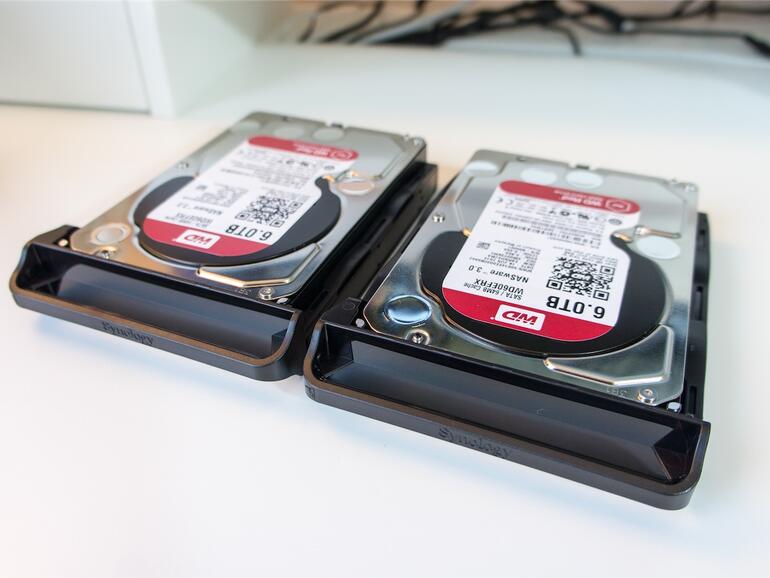 Die als Paar in einer Synology DS415play getestete 6-TB-Festplatte mit SATA-3-Interface stellt im ext4-Dateisystem formatiert jeweils effektiv nutzbare 5,41 TB Kapazität zur Verfügung. Die Leistungsaufnahme der Festplatte lag bei Last bei lediglich jeweils rund 5 Watt – das ist deutlich weniger, als herkömmliche Desktop-Festplatten verbrauchen. So wird nicht nur mit Blick auf den Dauerbetrieb Strom gespart, sondern auch für niedrigere Betriebstemperaturen gesorgt. Mit einer maximalen Datenrate von rund 180 Mbyte/s im Lesezugriff vermag die Platte auch mit Blick auf die Performance zu überzeugen.
