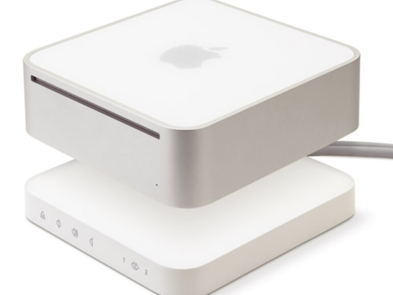 Belkins KVM-Switch (Keyboard, Video, Mouse) ist im Weiß des Mac mini gehalten und ermöglicht durch druckempfindliche Knöpfe an der Vorderseite neben dem Umschalten zwischen zwei Computern auch den Zugriff auf die Lautstärke und den CD-Auswurf. Die Energieversorgung wird von einem mitgelieferten Netzteil sichergestellt. Der Switch2 passt unter den Mac mini und benötigt somit keine Stellfläche auf dem Tisch. Auch die Verkabelung lässt sich einfach bewerkstelligen: Ein 60-Zentimeter-Kabel mit VGA- und USB-Anschluss sowie eine Miniklinke für Audio-Anwendungen werden an den mini angeschlossen. Das 1,80-Meter-Kabel mit identischen Steckern wiederum findet Anschluss am zweiten Rechner; in unserem Fall ein Power Mac G5.