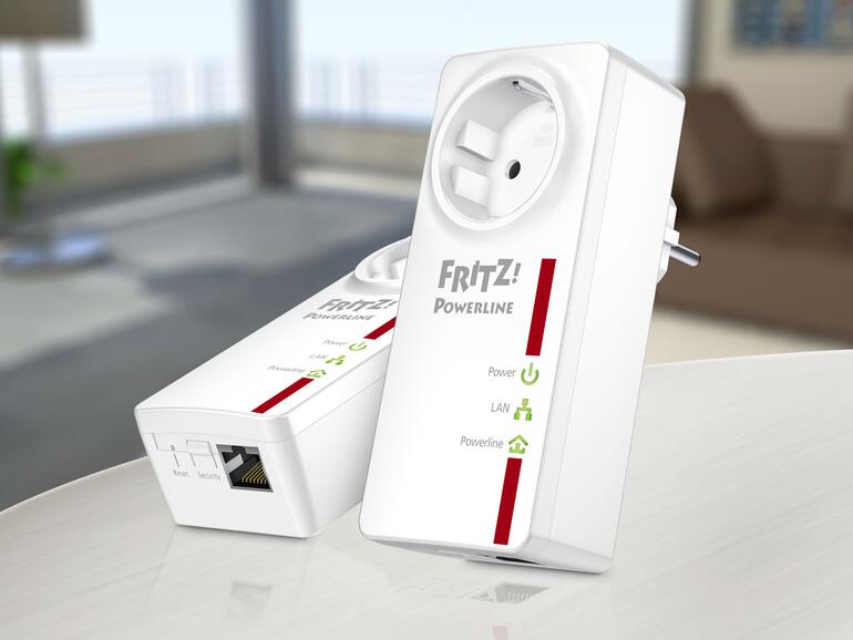 Tatsächlich dauerte es keine zwei Minuten, und schon wären Verbindungen unter das Dach, in den Keller und das Gartenhaus möglich gewesen, AES 128 Bit verschlüsselt und mit bis zu 500 Mbit/s – unter Laborbedingungen. Beim Test betrug der Datendurchsatz je nach Abstand der Adapter zueinander 350 Mbit/s im selben Raum mit sieben Metern Stromleitung und 280 Mbit/s mit zwei Zimmern und einem Sicherungskasten dazwischen. In einem zusammenhängenden Stromkreis überbrücken die Adapter bis zu 500 Meter, insgesamt können 16 von ihnen zusammen arbeiten, wobei nur einer an den Router angeschlossen sein muss. Charmant am 520E ist die integrierte Steckdose. Dadurch ist er zwar größer als sein Bruder 500E, verschwendet aber keinen Stromanschluss. Verwalten lassen sich die Powerline-Adapter aktuell nur über eine Windows-Software oder das Powerline Utility von Netgear, wobei AVM auf Browser-basierte Software umstellen wird.