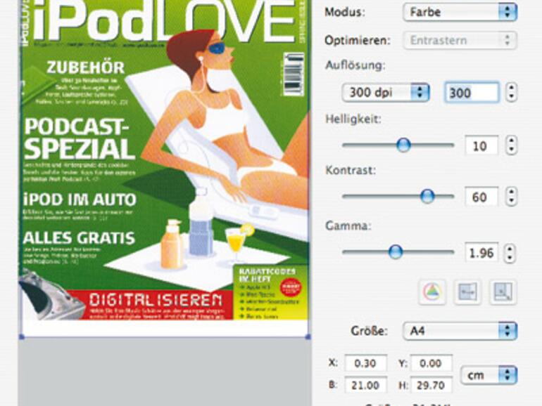 Während für Windows diverse Programme mitgeliefert werden, beschränkt sich der Lieferumfang für den Mac lediglich auf Treiber und die Software Exact-Scan. Diese liegt als Version 0.9 vor und läuft nicht immer stabil. Während unserer Tests fror das Programm mehrere Male ein und ließ sich nur über die Tastenkombination Apfel + alt + esc beenden. Eine Hilfe zur Anwendung ist nicht vorhanden. In der gedruckten Bedienungsanleitung wird Mac OS X mit keinem Wort erwähnt. Auch die auf dem Scanner verfügbaren Knöpfe zeigen unter Mac OS X keine Wirkung. Hinsichtlich der Mac-Unterstützung besteht erheblicher Nachholbedarf.