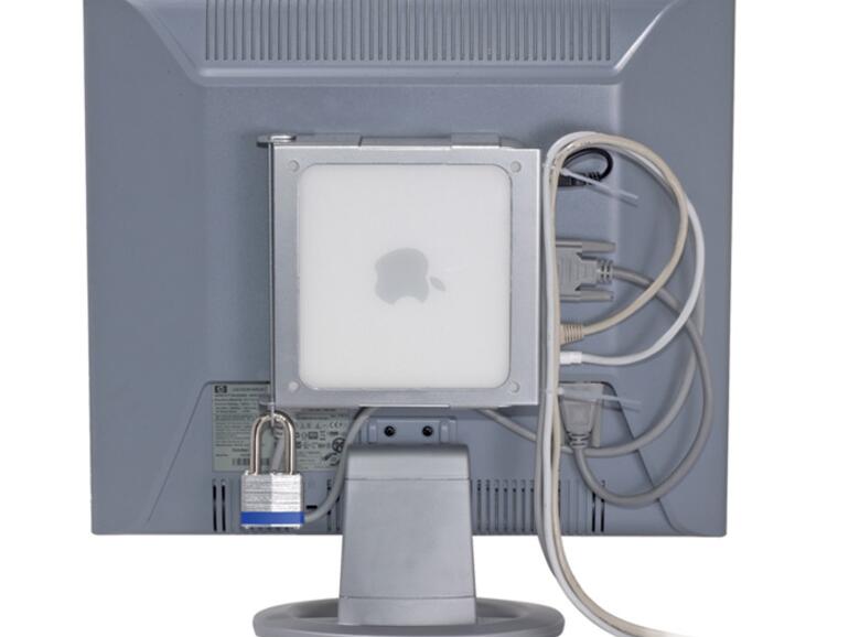 Dazu verbesserte der Hardwarehersteller seine bestehende Mac-mini-Halterung „MacCuff mini“ und stattete sie unter anderem mit einem Sicherheitsriegel aus, der den Mac mini vor Diebstahl schützen soll. Mit dieser und der Positionierungsmöglichkeit hinter dem Monitor weitet Sonnet die Einsatzmöglichkeiten der Halterung vor allem auf den Präsentations- und Bildungsbereich aus. Für den perfekten Schutz müsste dann aber auch der Monitor, an dem man den Rechner mit der Halterung befestigt, entsprechend gesichert sein.