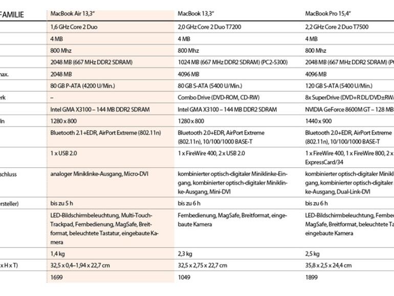 MacBook-Air-Interessierte werden sich mehr als andere Laptop-Käufer damit auseinandersetzen müssen, wie und wofür Sie ihren Portablen einsetzen. Hat man bereits einen Mac und sucht ein Arbeitsgerät für unterwegs, ist man beim Air unter Umständen gut aufgehoben. Soll der mobile Mac der Hauptrechner sein oder möchte man viele Zusatzgeräte wie einen externen Bildschirm, Drucker, Scanner etc. anschließen, ist man mit einem MacBook Pro besser bedient. Tatsächlich ist weniger nur für bestimmte Anwender mehr.