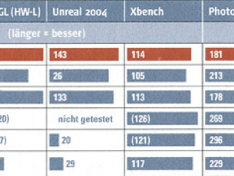 Trotz identischer Grafikkarten-Ausstattung lag das MacBook Pro 17" 2,33 GHz in puncto Spieletauglichkeit sogar noch etwas vor seinem kleinen Bruder mit gleichem Prozessor. Bei unseren Benchmark-Tests mit Doom 3 und Unreal Tournament erzielten wir jeweils eine Leistungssteigerung von etwa zehn Prozent. Im Vergleich zum direkten Vorgängermodell mit 2,16 GHz Core-Duo-Prozessor ist eine deutliche Leistungssteigerung auszumachen. So konnte das aktuelle MacBook Pro bei nativer Software wie iTunes oder iMovie die Performance um 16 respektive fast 30 Prozent verbessern. Auch im Umgang mit unter Rosetta laufender Software hat das MacBook Pro noch einmal zugelegt. Unser Photoshop-Test zeigte eine Leistungssteigerung um 25 Prozent zum Vorgängermodell.