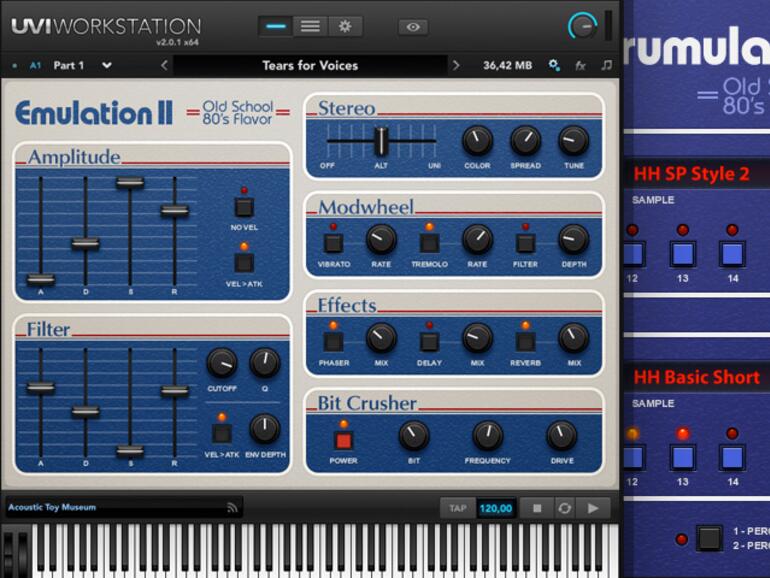 Als zusätzliches Bonbon zu den spielbaren Synthesizer-Sounds bietet Emulation II einen Drummodus, der sich an den alten Drummachines der 80er orientiert. Hier findet man eine große Auswahl an authentischen Samples und kann diese hervorragend einsetzen. Etwas schade, weil umständlich, finde ich den iLok Kopierschutz, der stets einen iLok-USB-Donge benötigt. Die UVI-Engine ist zudem etwas eingeschränkt, so dass sich die Klänge nicht allen Bedürfnissen anpassen lassen. Während der Testphase konnte ich zudem mehrere Abstürze der Engine verzeichnen
