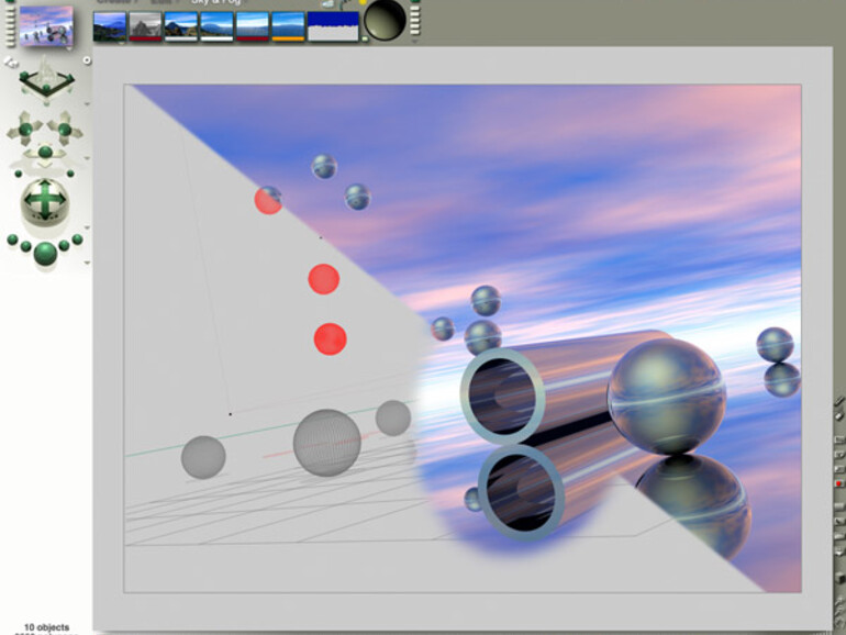 Wer sich bereits in der Bryce-Benutzeroberfläche aufhielt, muss keine Neuerungen befürchten. Egal ob Vor- oder Nachteil, bis auf einen Farbwechsel von Corel-Blau zum DAZ-Grün ist alles beim Alten geblieben. Neben ein paar Änderungen in Sachen Management der Voreinstellungen speichert Bryce auf Wunsch Szenen als gepackte Datei im zip-Format.