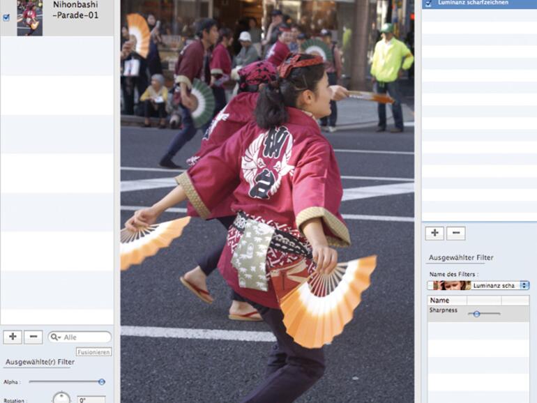 Besser sieht es natürlich bei den Filtern aus: LiveQuartz stellt die ganze Palette zur Verfügung und erlaubt es, mehrere Effekte anzuwenden. Dabei wird immer verlustfrei gearbeitet, jeder Effekt lässt sich zu jedem Zeitpunkt ein- und ausblenden. Verlustfrei wird auch mit den Malwerkzeugen gearbeitet: Eine Linie wird automatisch auf einer neuen Ebene gezeichnet. Dafür fehlen wiederum einfachste Funktionen, wie das Skalieren von Bildern, in LiveQuartz ist nur das Ausschneiden eines Bereichs vorgesehen.