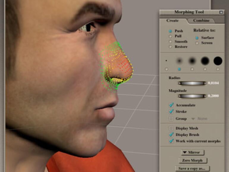 Die Werkzeugpalette wurde um ein Morphing-Werkzeug erweitert. Im Stil des Malpinsels lassen sich jene Körperregionen anheben, absenken und glätten, die im farbigen Raster der einstellbaren Pinselbreite liegen. Dank eines Restore-Austattungsmerkmals können Änderungen genauso einfach wieder zurückgenommen werden. Bewegungsabläufe können in Animation-Layer nichtlinear ausgeführt sein und sind natürlich mit der Lippensynchronisation kombinierbar. Die so genannten Universal Poses sind der programmierte Gruppenzwang. Auf einen Mausklick nehmen alle in eine Szene eingefügten Charaktere dieselbe Haltung an.
