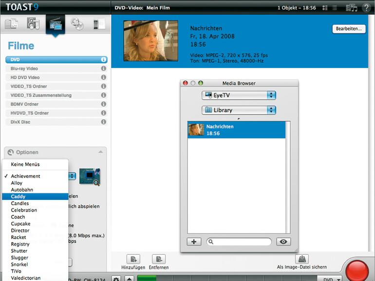 Wer sich wundert, warum die Blu-ray-Unterstützung als Highlight-Funktion von Toast 9 angepriesen wird, den klärt ein genauerer Blick auf. Ermöglichte schon Toast 8 das Brennen von Daten auf eine Blu-ray-Disc, so ist es mit Toast 9 nun auch möglich, Video-Discs im Blu-ray-Format zu brennen, wenn man über ein entsprechendes Dritthersteller-Laufwerk verfügt. Ebenso können HD-DVDs erstellt werden, wobei diese Funktion nach der Entscheidung des DVD-Nachfolgeformat-Krieges quasi überflüssig geworden ist. Es sei denn, man hat bereits in ein HD-DVD-Gerät investiert. Nicht zu verachten ist darüber hinaus die Möglichkeit, hochauflösendes Videomaterial auch auf eine gewöhnliche DVD-R zu brennen, wobei hier natürlich nur recht knapper Speicherplatz zur Verfügung steht.