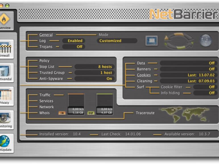 Wieso sollte eine Firewall (oder ein so genannter Paketfilter) auf Softwarebasis nicht direkt auf dem Computer laufen, der geschützt werden soll? Nun, gesetzt den Fall, es gibt auch nur eine einzige bekannte Lücke in Mac OS X, so lässt sich die Firewall als Prozess womöglich einfach beenden und versieht dadurch das Objekt der Begierde des unerwünschten Eindringlings mit einer sperrangelweit offenen Eintrittstür. Nichtsdestotrotz ist angesichts der Tatsache, dass für Privatpersonen der Einsatz eines getrennten Geräts ausschließlich als Firewall nur selten sinnvoll ist – funktionelle Multitalente sind zudem meist weniger kompliziert zu konfigurieren und verkabeln –, der zusätzliche Einsatz von Softwarelösungen wie NetBarrier X4 sehr empfehlenswert.