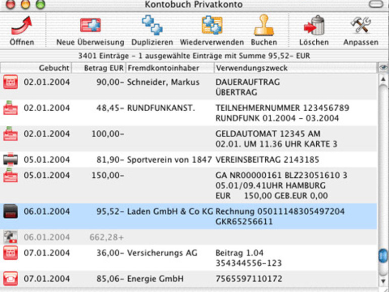Jetzt ist zudem auch die Abfrage von Wertpapierdepots möglich, die unter Eigenkontonummern angelegt sind. Auswerten und Handeln von Aktien lässt sich mit MacGiro allerdings noch nicht. Neu sind auch die beschleunigten Ausführungen von Überweisungen per HBCI und die HBCI-Umbuchung zwischen eigenen Konten. Unberechtigte Abbuchungen lassen sich nun einfach zurückgeben, ohne die Bank per Brief darum zu bitten (Lastschrift-Widerspruch). Portogebühren sparen kann nun derjenige, der die Kontoauszüge im klassischen Format als PDFs zum Selbstausdruck anfordert. Wer die HBCI-Standards für ein Konto erhöhen oder verändern möchte, wird jetzt über einen Assistenten unterstützt. Updates holt sich MacGiro mittlerweile automatisch in einstellbarem Rhythmus, ebenso Skriptupdates für bankseitige Änderungen oder Bankleitzahlen.
