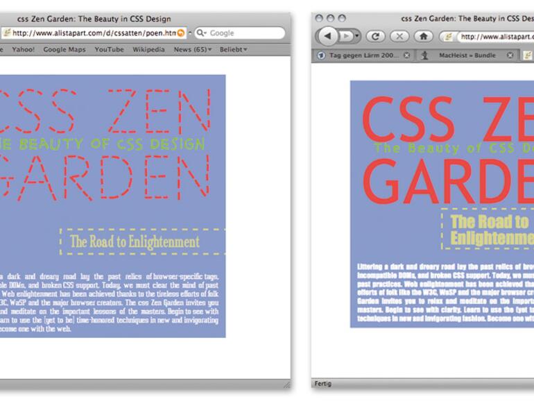 Die eigentlichen Qualitäten der neuen Version liegen jedoch in der Unterstützung neuer Webstandards. Dazu zählt zum Beispiel Web Fonts, eine Erweiterung der Cascading Style Sheets (CSS), mit denen echte TrueType Schriften in die Seite geladen werden. Typografisch interessante und „lesbare“ Schriften könnten also bald bisherige „unlesbare“ Schrift-Bilder ersetzen. Erstmals möglich sind auch CSS Animationen: Bestimmte Elemente lassen sich weich ein- und ausblenden. Wer zudem auf echte Farben Wert legt, wird sich über den Schritt zum erweiterten Farbmanagement freuen. Bilder von roten T-Shirts mit eingebettetem ICC-Farbprofil strahlen damit im Online-Katalog in den gleichen Farben wie im gedruckten Exemplar. Bei der Kantenglättung von Schriften macht Safari ebenfalls so schnell kein Konkurrent etwas vor.