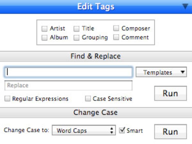 Für solche Fälle verspricht iTunify Abhilfe, ein Programm zum Bearbeiten von iTunes-Tracks. Es integriert sich nicht direkt in iTunes, sondern schwebt erhaben als eigenständiges Fenster über allen Anwendungen. In iTunes werden die zu bearbeitenden Tracks selektiert, dann kommt iTunify zum Zuge. Die erste Funktion des Programms ist das Suchen/Ersetzen von Interpreten, Albumtiteln und anderen Songdaten. Für die Korrektur von Groß-/Kleinschreibung ist eine eigene Option vorhanden, genauso wie für die Tauschfunktion, mit der beispielsweise Komponist und Musiker ihre Plätze tauschen.