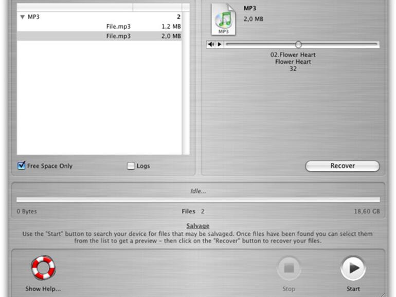 Da sich iTunes mit dem iPod abgleicht, verschwinden bei der automatischen Verwaltung Songs, die in iTunes gelöscht werden, auch auf dem iPod. Die Funktion Undelete kann verlorenes Liedgut wieder finden. Undelete durchsucht den gesamten Datenträger, was einige Zeit dauern kann und erlaubt danach ein Probehören und Wiederherstellen der Datei. Ganz neugierige werfen mit Details einen Blick in die Innereien. Die wohl nur für technisch Interessierte aufschlussreiche Liste lässt sich auch abspeichern.