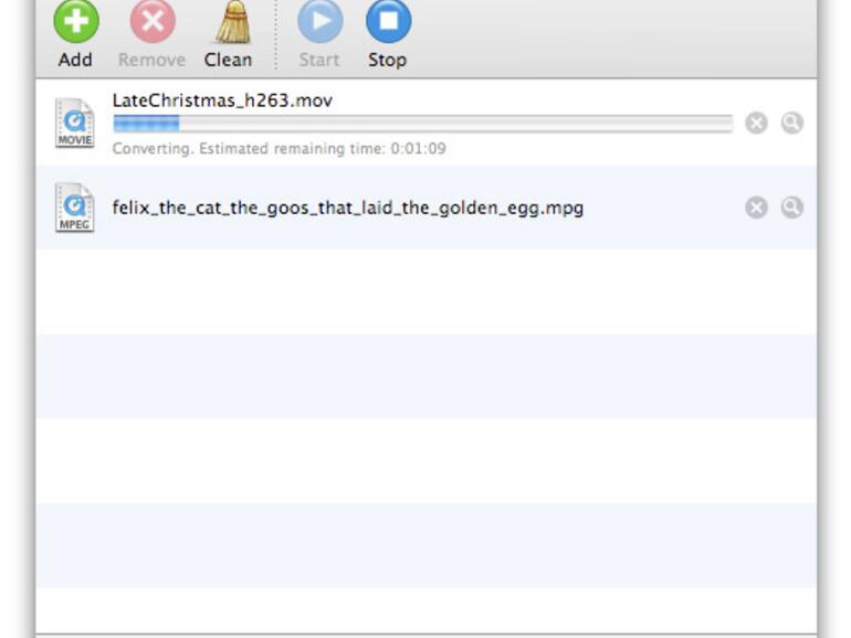 Auf dem Testrechner (MacBook Pro 2,0 GHz) benötigte YakaMoov für zwei Kurzfilme, „Late Christmas“ (zwei Minuten) und „Felix the Cat“ (sieben Minuten), knapp zwei, beziehungsweise acht Minuten zum Konvertieren. iSquint, mit den Optionen H.264 und Gib alles (höchste Qualität), schaffte den Weihnachtsfilm in einer und den Katzen-Cartoon in vier Minuten. In der nicht registrierten Version fügt YakaMoov in regelmäßigen Abständen Shareware-Hinweise in den Film ein – stark abbremsen dürfte dies das Programm aber nicht.