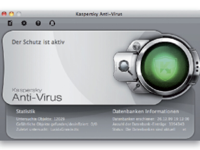 Nach der Installation muss die Aktualisie rung der Datenbanken einmalig von Hand gestartet werden, damit der volle Schutz bereitsteht. In der Folge geschieht dies für den Anwender unbemerkt im Hinter grund. Kaspersky Anti-Virus for Mac greift auf Informationen zu mehr als 20 Millio nen Schadprogrammen zurück, Geschwin digkeitseinbußen oder anderweitige Be ein trächtigungen sind damit im Alltags betrieb nicht verbunden.