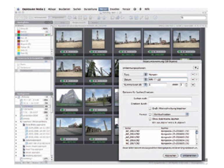 Denn obwohl Aperture und Lightroom viel von iView MediaPro übernommen haben, stoßen die Bildbearbeitungsboliden bei der Verwaltungsgeschwindigkeit an ihre Grenzen. Zudem beschränken sie sich auf reine Bildverwaltung, während EM über 120 Medien-Formate katalogisieren kann, und dennoch rudimentäre aber schnelle und oft ausreichende Bildbearbeitungsfunktionen besitzt. Größter Vorteil der neuen EM-Version ist denn auch die Geschwindigkeit und ressourcenschonende Speicherplatzverwaltung. Zwar ist das Programm von 18,3 Megabyte auf 45,8 Megabyte gewachsen (Aperture 239 MB, iPhoto 550 MB), dafür ist der Katalog einer Sammlung von knapp 30000 Fotos, die über 65 Gigabyte auf der Platte einnehmen, weniger als 300 Megabyte groß. Zum Vergleich: Ein Aperture-Katalog von 20000 Fotos benötigt 17,5 Gigabyte. Logisch, dass dann auch das Scrollen beziehungsweise Blättern durch die gesamte „Thumbnails“-Sammlung bei EM wesentlich schneller ist.