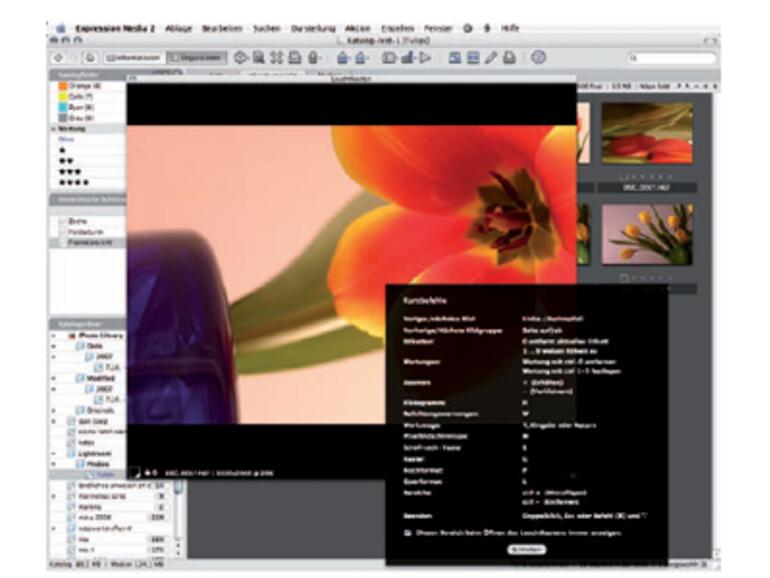 War die Version 1.0 noch nahezu identisch mit iView MediaPro 3.0 aus dem Jahr 2005, wurde sie mit einem Update für die Intel-Prozessoren „universalisiert“. Wesentliche Neuerungen sind jedoch erst jetzt mit der Version 2.0 zu verzeichnen, wenngleich Oberfläche und Ergonomie in der gewohnten Qualität erscheinen. Das reflexartige Misstrauen, das einem Produkt in Microsofts Hand entgegenschlägt, hatte es in den vergangenen Jahren still werden lassen um Expression – die meisten Mac-Anwender schworen auf ihre letzte Media- Pro-Version oder nutzten die Katalogeigenschaften von iPhoto, Aperture oder Lightroom. Und während sich Microsofts Mac-Abteilung mit der neuen Office 2008 Version in puncto Geschwindigkeit und Stabilität nicht mit Ruhm bekleckerte, könnten die ehemaligen iView- Programmierer mit der EM-Version 2.0 für neuen Reputationsgewinn sorgen.
