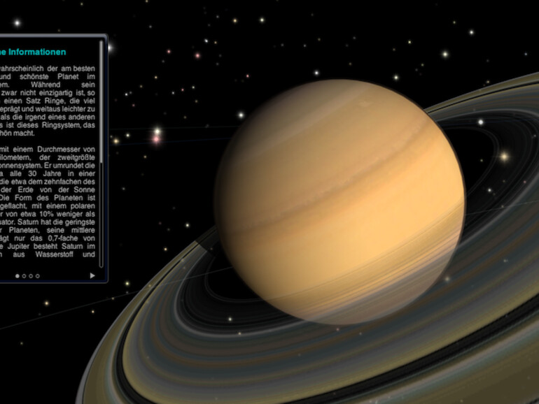 Zu jedem Planeten, den Monden und der Sonne kann ein Info-Text aufgerufen werden, der relativ knapp auf wichtige Daten und die Entdeckung des Himmelskörpers eingeht. Die Flugbahnen einiger Satelliten und der ISS werden zwar angezeigt, aber weitere Informationen können nicht abgerufen werden.