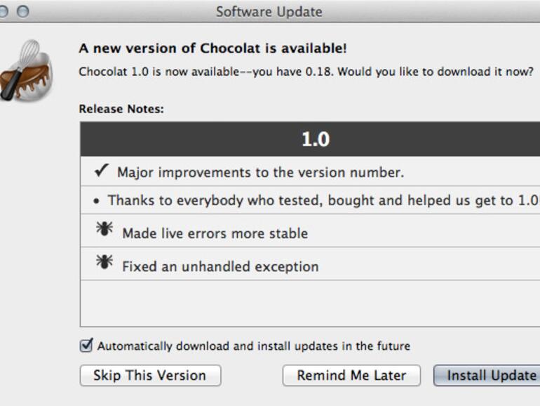 An einigen Enden und Ecken merkt man, dass Chocolat noch sehr neu ist, denn es fallen Fehler auf. Die Unterstützung durch die beiden verantwortlichen Entwickler, Alex Gordon und Jean-Nicolas, ist vorbildlich. Sie reagieren schnell und freundlich auf elektronische Post. Mit etwa 40 Euro ist Chocolat eher hochpreisig.
