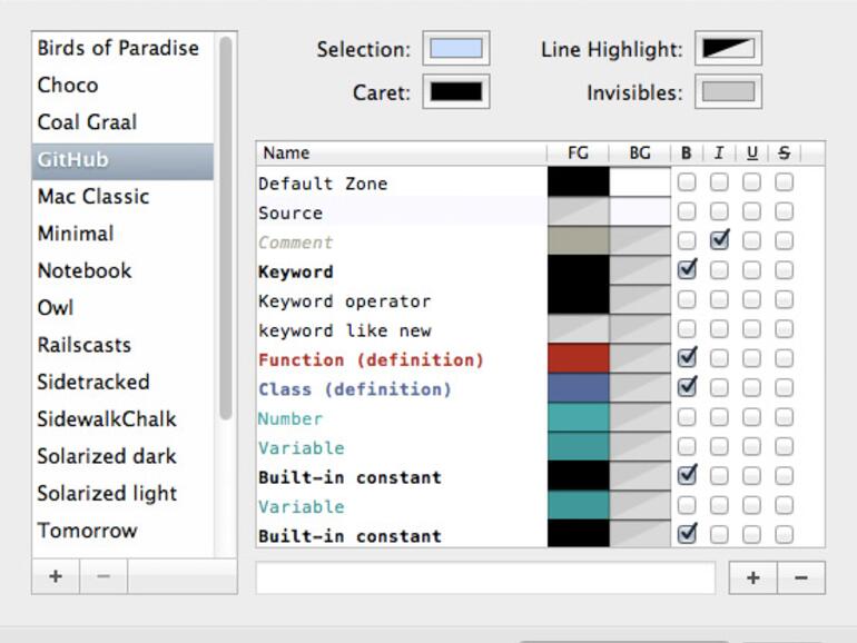 Chocolat ist schnell, schlank und minimalistisch. Die aufgeräumte Oberfläche lädt nicht zum Spielen, sondern zum Arbeiten ein. Dennoch lassen sich über die Einstellungen verschiedene Themes und Eigenschaften vornehmen, hat man also den Drang, die eigene Oberfläche anzupassen, lässt Chocolat das Individualisieren zu. Wer viel mit TextMate gearbeitet hat, wird sich freuen, dass Chocolat die TextMate-Bundles importieren kann.