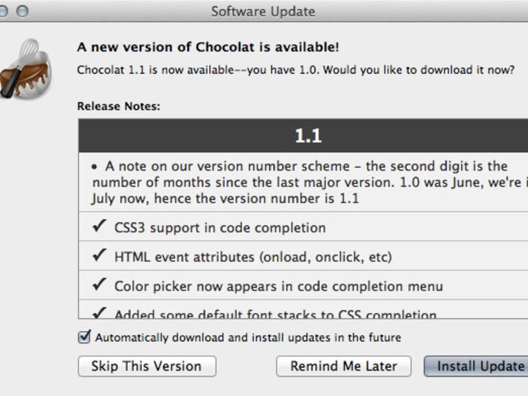 Wer auf der Suche nach einem modernen, schlanken Text-Editor ist, sollte sich Chocolat unbedingt einmal ansehen. Eine kostenlose Demo ist erhältlich. Chocolat in der zurzeit aktuellen Version 1.1 kostet derzeit umgerechnet rund 40 Euro und lässt sich mit Kreditkarte oder PayPal bezahlen.