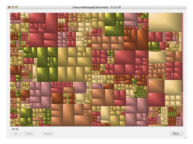 Wer die Löschen-Funktion braucht, ist bei WhatSize besser aufgehoben. Schick ist GrandPerspective auf alle Fälle – schöner sah eine volle Festplatte nie aus.