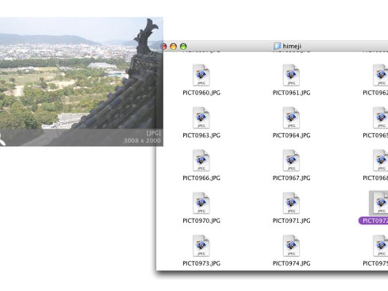 Dateinamen von Digitalfotos sind ein Mysterium, das zu lüften die Aufgabe kleiner Vorschaubildchen ist. Eine leicht größere Vorschau gibt es in der Spaltenansicht des Finders, in vollem Glanz erscheinen die Bilder dann im Vorschau-Programm oder in iPhoto. Wer schon im Finder eine ausreichend große Vorschau haben möchte, startet MilkyWay. MilkyWay ist eine Erweiterung, die auf Mausklicks im Finder wartet: Wird eine Grafik angeklickt, erscheint eine vergrößerte Ansicht des Fotos auf dem Bildschirm.
