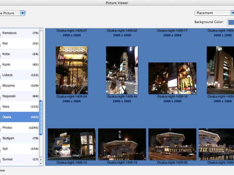 Da gerade Vielfotografierer in iPhoto selten die Titel der einzelnen Bilder ändern, was ohnehin keine Auswirkungen auf den Dateinamen hätte, und stattdessen mit Tags arbeiten, ist die Auswahl des gewünschten Hintergrundbilds bei den kryptischen Dateinamen von Digitalfotos etwas schwierig. Unter View Pictures bietet das Programm jedoch eine Bildauswahl mit Vorschaugrafiken an, die optisch etwas an iPhoto erinnert. Zumindest auf dem Testsystem stürzte die Software allerdings jedes Mal ab, wenn versucht wurde, in dem Fenster den Ordner zu wechseln.