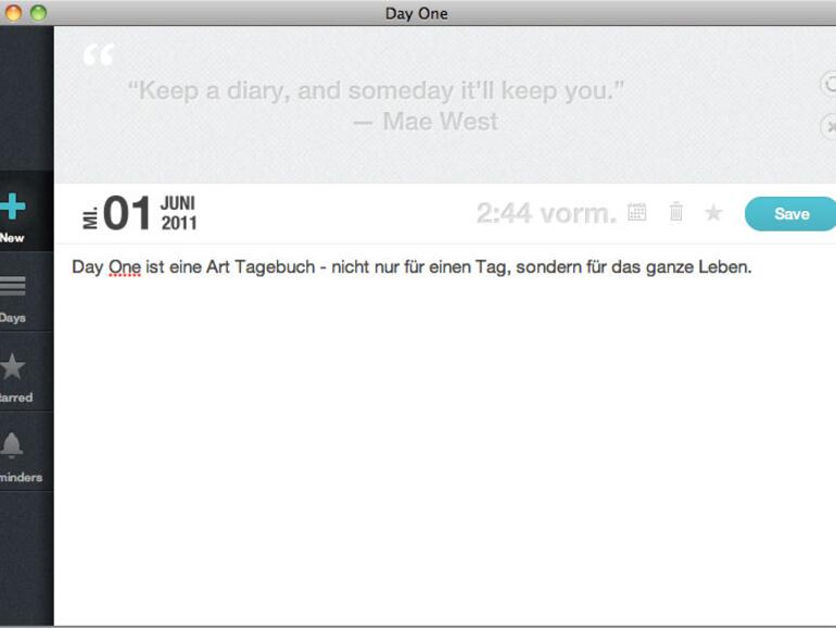 Das Day-One-Tagebücher zu einer Textwüste werden, fällt dank der gelungenen Gestaltung des Programms kaum auf. Eher ein Überbleibsel der iOS-Version sind Erinnerungen, die mehrmals an einem Tag oder in einer Woche den Anwender an etwas erinnern – an was, lässt sich nicht festlegen. Passwortschutz bietet die App derzeit nicht.