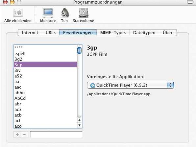RCDefaultApp ist eine Erweiterung für die Systemeinstellungen, in denen festgelegt werden kann, welche Anwendung welche Dateitypen öffnen soll. Die Liste der Dateitypen kann dabei sowohl nach dem MIME-Typ (application/pdf) als auch nach der Dateiendung (.pdf) angezeigt werden. Auch für die einzelnen Internetprotokolle ist eine Zuteilung möglich – nützlich beispielsweise für FTP-Verweise, mit denen einige Mac-Browser nicht gut zurecht kommen und die beim FTP-Programm besser aufgehoben sind.