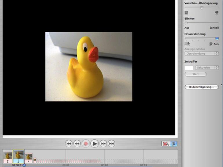 Die Installation ist einfach und geht schnell; das Still Camera-Plugin ist in der Routine bereits integriert. Nur noch die Seriennummer eingeben und das Zusammensetzen Ihres ersten Stop-Motion Films kann beginnen. Ab Version 1.8 können Sie in der Bildauswahl des Still Camera-Plugin mehrere Bilddateien gleichzeitig markieren und in einem Prozess importieren. Die Applikation ordnet jedes Bild einem Zeitfenster zu. Im Stil der Icon-Vergrößerung des Docks lässt sich der Inhalt der Frames einfach durch Bewegung des Mauszeigers darauf anzeigen. Auch wenn der Vergrößerungsfaktor für den Anwender nicht veränderbar ist, so genügt die vorgegebene Größe für ein effizientes Arbeiten vollkommen.