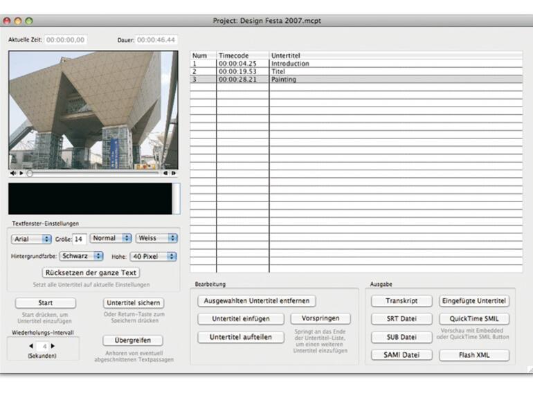 MovCaptioner ist eine brauchbare, allerdings nicht gerade elegante Lösung zum Einfügen von Untertiteln. Das Einfügen neuer Titel ist eher umständlich, eine interne Vorschaufunktion gibt es nicht, und die Liste zeigt nur den Start des Untertitels an.