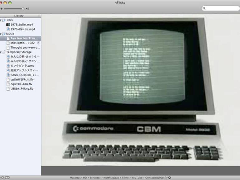 Qual der Wahl bei der Videowiedergabe: QuickTime Player bietet keine Wiedergabelisten und iTunes klammert sich an bestimmte Dateiendungen – Flash-Videos bleiben damit selbst bei installiertem Perian-Plug-in außen vor. Mit yFlicks ist ein neues Wiedergabeprogramm erschienen, welches auf QuickTime aufsetzt und mit den gängigen Plug-ins (Flip4Mac WMV, Perian) eine ganze Reihe von Formaten abspielt. Importierte Videos verändern nicht ihren Platz auf der Festplatte, in yFlicks wandern sie erst einmal in den Bereich „Temporary Storage“.