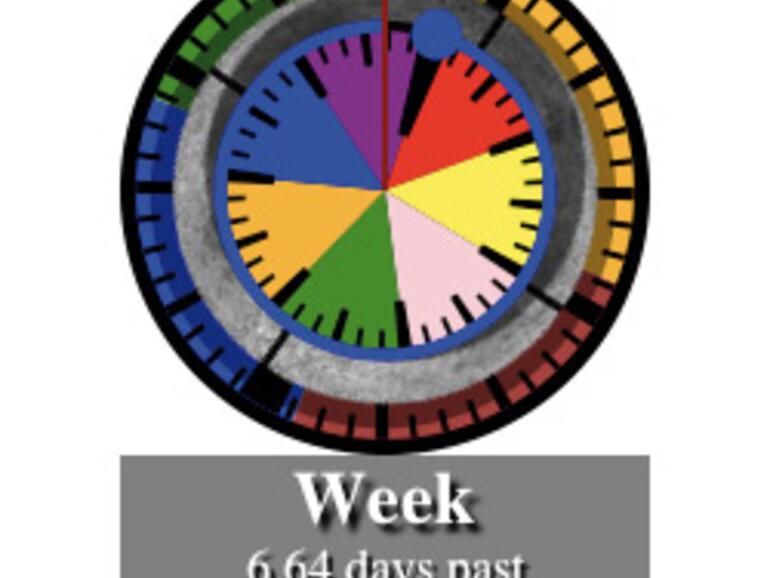 Doch die Farbigkeit dient nicht nur der Optik, sondern unterstützt auch das Zeitmessen: Mit gedrückter Ctrl-Taste lässt sich beispielsweise ermitteln, wie viel Zeit noch von der Stunde oder dem Tag übrig ist.