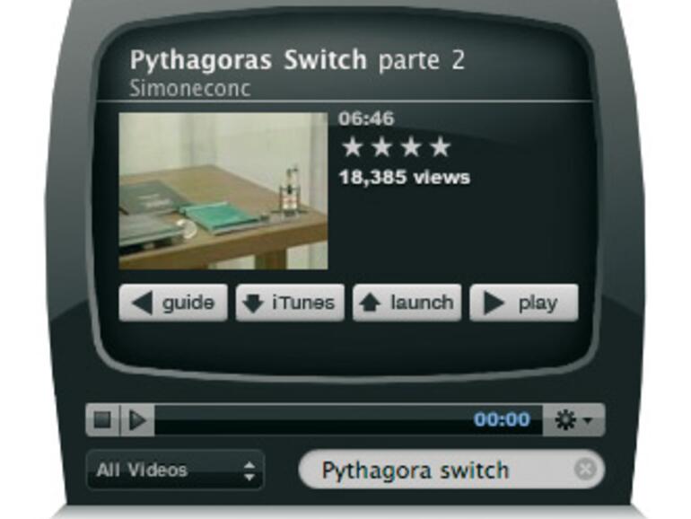 Es gibt eine Suchfunktion, die Möglichkeit auf die eigenen Videos zuzugreifen und verschiedene Wiedergabemöglichkeiten bis zum Vollbild. Besonderer Gag: das TV-Rauschen, bevor das Video startet. Der iPod-/iTunes-Export ist Shareware (1,99 US-Dollar), der Rest Freeware.