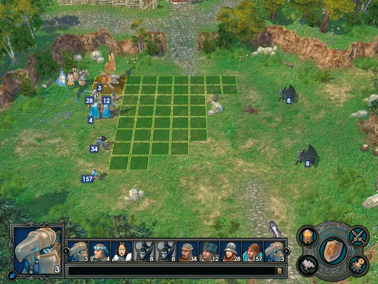 Unser Held, oder im späteren Spielverlauf auch mal Helden, erforscht hoch zu Ross seine Spielwelt. Seine Bewegungspunkte sind auf eine bestimmte Zahl beschränkt, diese lassen sich im Spielverlauf später steigern, so dass pro Runde mehr untersucht werden kann. Wenn man auf eine feindliche oder neutrale Einheit stösst, kommt es schlimmstenfalls zum Kampf. Es kann aber auch sein, dass der Feind Reißaus nimmt oder sich sogar dazu entschließt, sich unseren Truppen anzuschließen. Für den Kampf wird wie gehabt in den Taktikschirm umgeschaltet. Hier werden wie beim Schach abwechselnd die verschiedenen Einheiten bewegt.