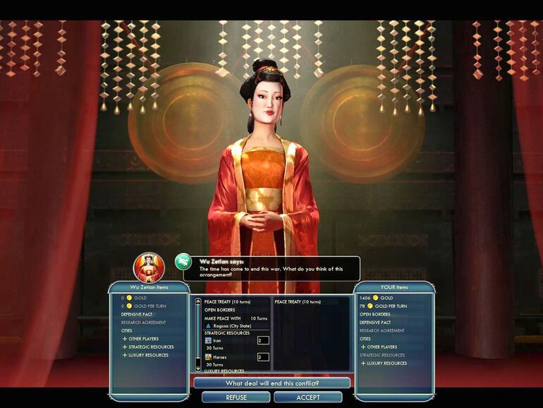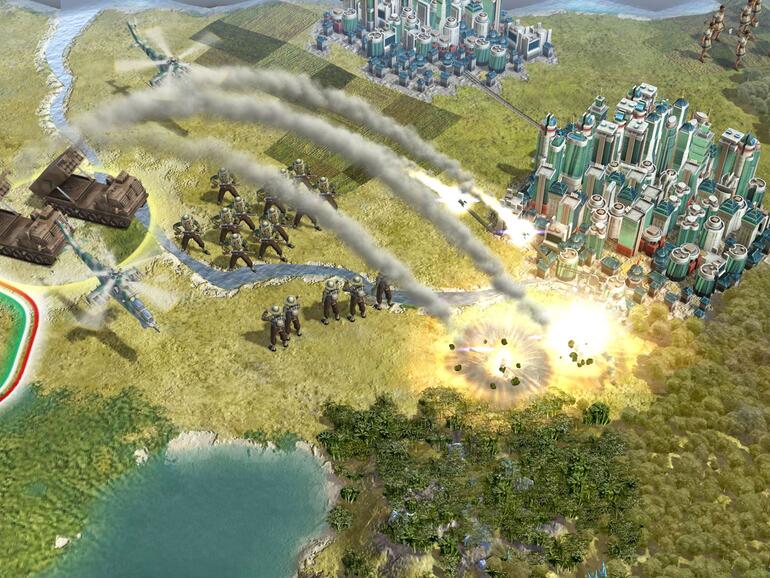 Civilization-Veteranen können diesen Absatz getrost überspringen, aber es soll tatsächlich den einen oder anderen Strategiespieler geben, der von Sid Meiers genialer Reihe noch nie gehört hat. In Civilization wird der Spieler zum Oberhaupt einer ganzen Nation und führt deren Geschicke, angefangen beim Nomadenstamm, der auf der Suche nach dem idealen ressourcenreichen Siedlungsplatz die Lande durchstreift. Wenn man seine Sache gut macht, führt man die eigene Nation nach unzähligen Jahren zu den Sternen. Auf dem Weg dorthin gilt es, unerforschtes Territorium zu erforschen, Städte und Infrastruktur auszubauen, umwälzende Erfindungen wie das Rad oder die Druckmaschine zu machen, die wiederum den Weg zu neuen Gebäuden oder Einheiten freimachen. Man trifft auf andere Völker, mit denen man Handel treiben oder Krieg führen kann. Verstärkt wird der Sog durch den rundenweisen Spielablauf, sodass aus der angeblichen letzten Runde („Nur noch eine!“) sehr oft die halbe Nacht wurde. Jeder Spieler zieht wie bei einem Schachspiel seine Figuren, dann sind erst einmal die Mitspieler dran.
