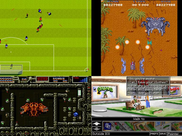 So findet man etwa auf Atari-Seite das sowohl technisch als auch spielerisch faszinierende Jump’n Run Schreckenstein, das Adventure Atlantis oder den Lemmings-Ableger The Brundles. Den Arcade-Kracher One Man and his Droid, das Ballerspiel Crosswize oder den Text-Adventure-Klassiker Knight Orc gibt es hingegen bei den Spectrum-Spielen. Amiga-Veteranen pflügen sich durch die Alien-Horden in Hybris, bolzen bei Fußball Total oder gehen mit dem A320 Airbus in die Luft. Mit Turrican, Katakis oder Leisure Suit Leo finden schließlich auch C64-Liebhaber actionreiches und rätsellastiges Futter.