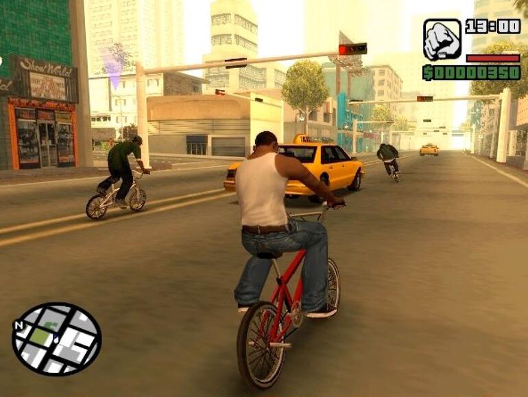 Natürlich beginnen Sie mit kleineren Aufträgen wie dem Abfackeln eines Hauses, dem Klauen von Waffen oder Vermöbeln kleinerer Dealer der Konkurrenz, bevor die komplexeren Aufträge kommen. Unterwegs sind Sie in den endlos wirkenden Strassenschluchten zunächst zu Fuß. Aber in guter GTA-Manier können Sie sich ganz einfach einen von knapp 200 fahrbaren Untersätzen aneignen. Diese reichen vom BMX-Rad über alle möglichen Autos bis zu Trucks und später gar einem Helikopter oder Sportflugzeug. Den eigenen Charakter können Sie wie in einem RPG aufwerten, indem Sie den Helden zum Beispiel ins Fitnessstudio schicken. Haben Sie sich erfolgreich durch Los Santos geraubt und gemordet, führt Sie der Erzählstrang in das ländlich idyllische San Fierro, bevor es zum großen Finale in die Wüstenstadt Las Venturas geht.