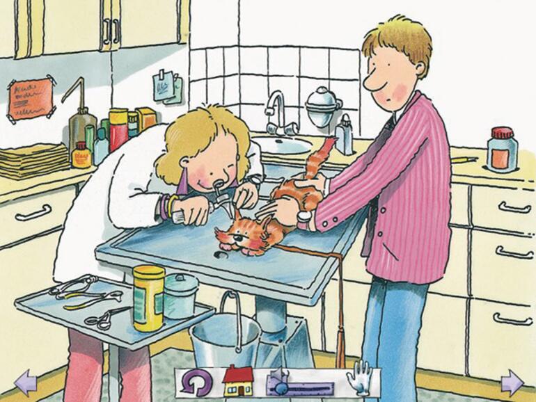 Der Besuch der kleinen Sophie bei ihrer Tierärztin Petra ist eines davon und nett illustriert, dabei aber eher ein bebildertes Hörspiel als eine Animation. Allerdings sind einzelne Bildelemente bei Klick animiert, was wiederum genau das Richtige für die Zielgruppe ist. Weitaus schwieriger sind da schon die Spiele: Ferkelfangen erfordert ebenso wie das Blasrohr beim Tiger impfen oder die Sortierung der Pillen viel Geschicklichkeit. Hier sollten die Eltern unbedingt mithelfen, soll das Computerspiel nicht frustrieren. Und nach dem Besuch beim Tierarzt kann der kleine Computernutzer dann noch das in zwei Schwierigkeitsstufen und auch zu zweit spielbare Quiz durchgehen.